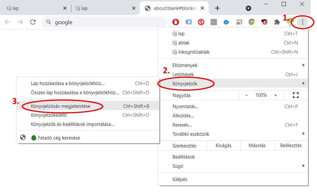 1. Könyvjelző sor megjelenítése a Chrome böngészőben