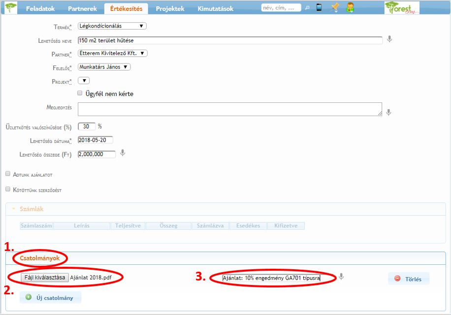 - csatolja a PDF file formátumban elkészített ajánlatot az üzleti lehetőséghez,