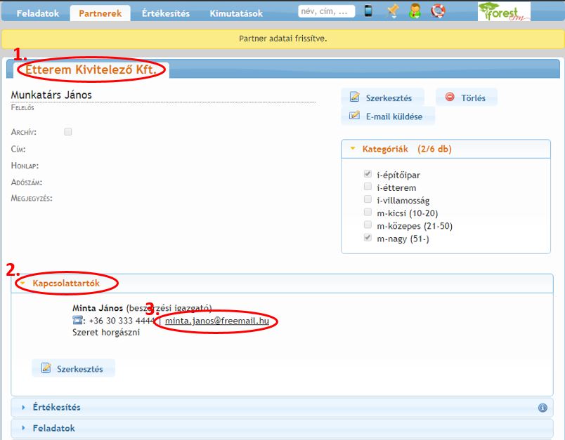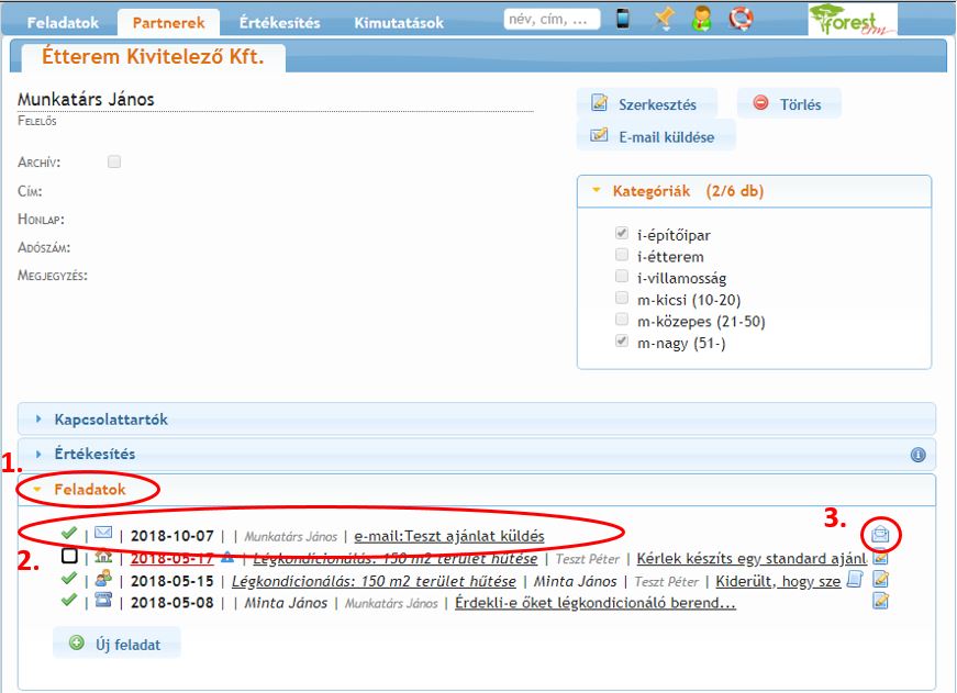 Szekció neve “Hol található az elküldött ajánlati email a ForestCRM-ben?”Ha rákattint a küldés gombra a levelező rendszerében, néhány perc múlva (amikor a levél átmegy a levelező szervereken) a levél a ForestCRM-ben is megtalálható lesz, a végrehajtott feladatok között.