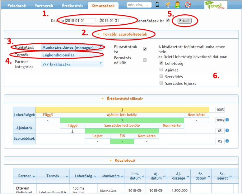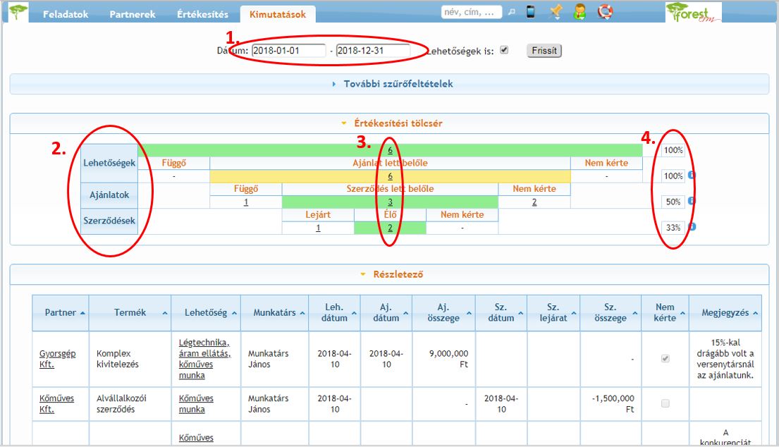 Az egyik legérdekesebb kimutatásunk az értékesítési tölcsér. A kimutatás a ForestCRM Extra funkiói között található, melyeket a legnagyobb csomagunk tartalmaz, a kisebb csomagokhoz pedig kiegészítésként vásárolható meg.