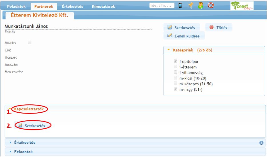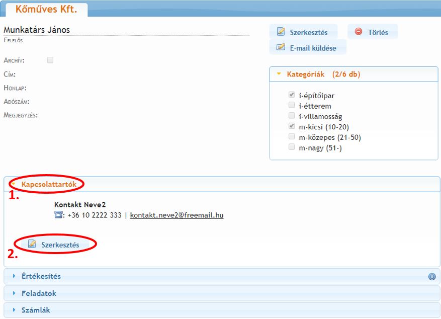 A Kapcsolattartók között kattintsunk a Szerkesztés gombra.