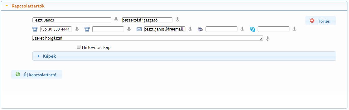 Képek is csatolhatók a kontakt személyhez. Ide csatolhatjuk névjegykártyájának fényképét.