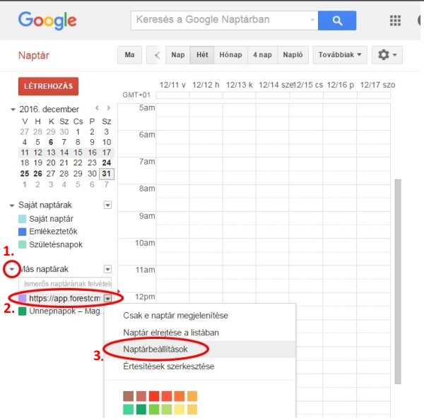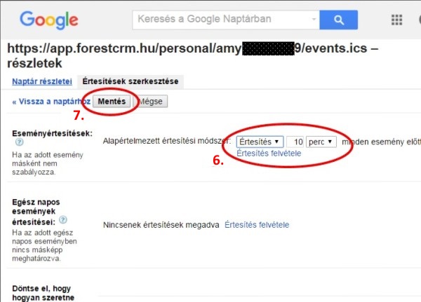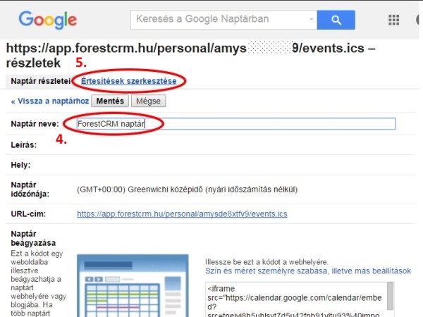 - “Naptár neve:” sorba érdemes beírni: ForestCRM és a naptár tulajdonos monogrammját.