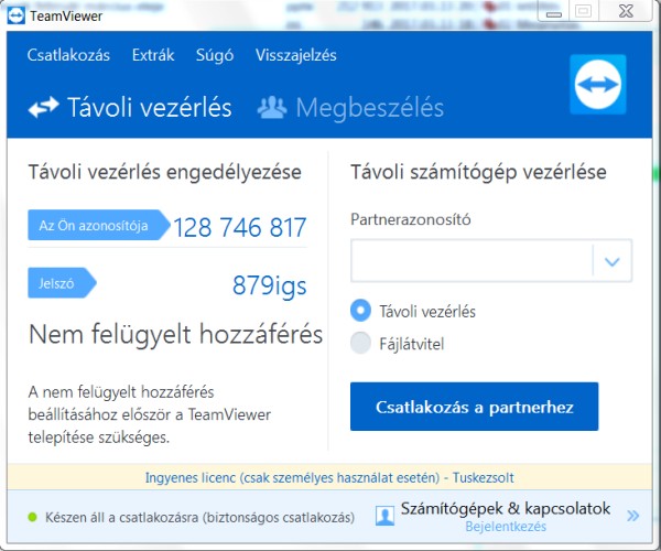 A Teamviewer egy program, melynek segíségével az interneten keresztül láthatóvá tehető egymás képernyője. Ez azért jó, mert így távolról rá tudunk nézni a képernyőjére, ha valami rendellenes működést tapasztal és az e-mail-es bejelentéssel nem tudjuk megállapítani a működés okát.